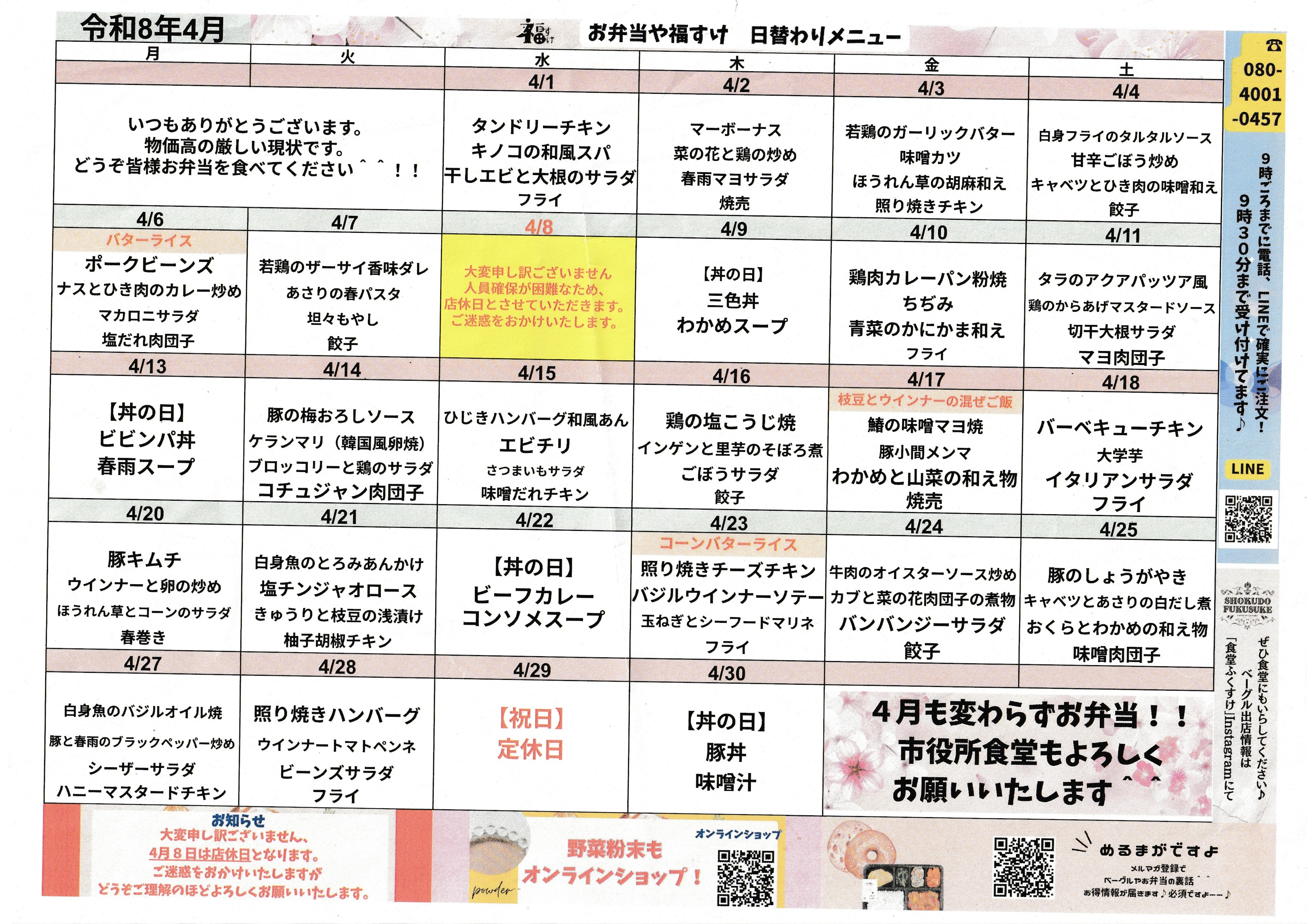 明日は福すけのお弁当だから安心、を約束します。
