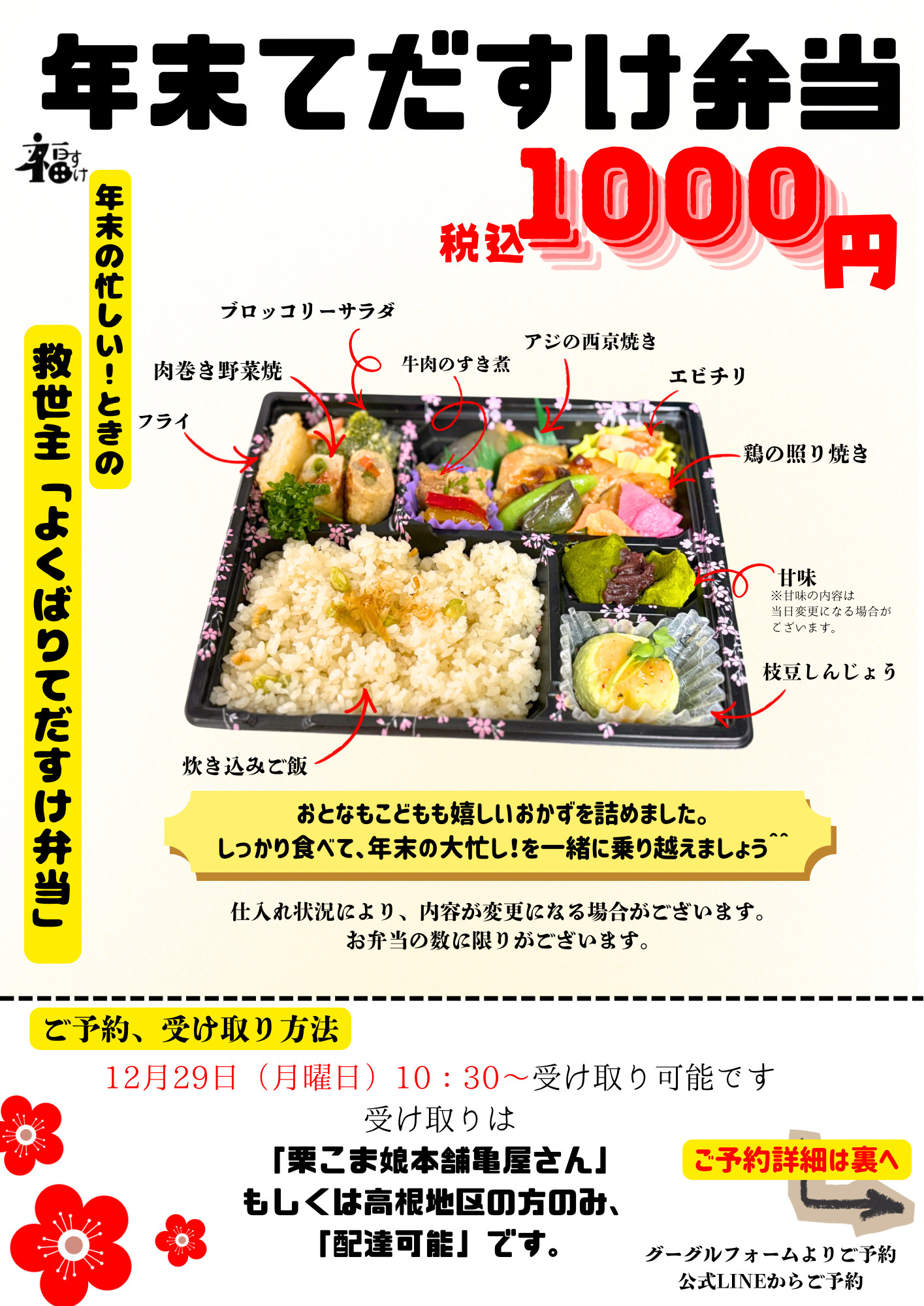 12月29日てだすけ弁当ご予約開始です!